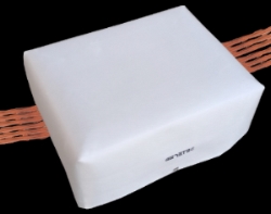 Housse de protection en toile incombustible classe M0 pour protéger vos satellites des retombées pyrotechniques. Equipée d'oeillets à sa base. Couleur gris clair. 470x380x180mm, 250g.